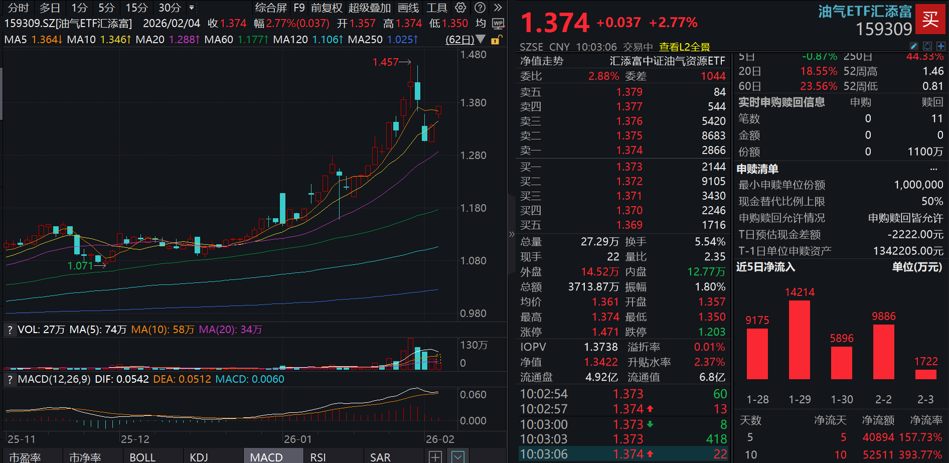 2月4日,地缘局势严峻加剧,能源、油气板块大涨!能源ETF(159930)大涨近4%,油气ETF汇添富(159309)涨近3%!资金持续增仓,油气ETF汇添富(159309)近20日有19日获净流入,累计“吸金”超5.8亿元!
