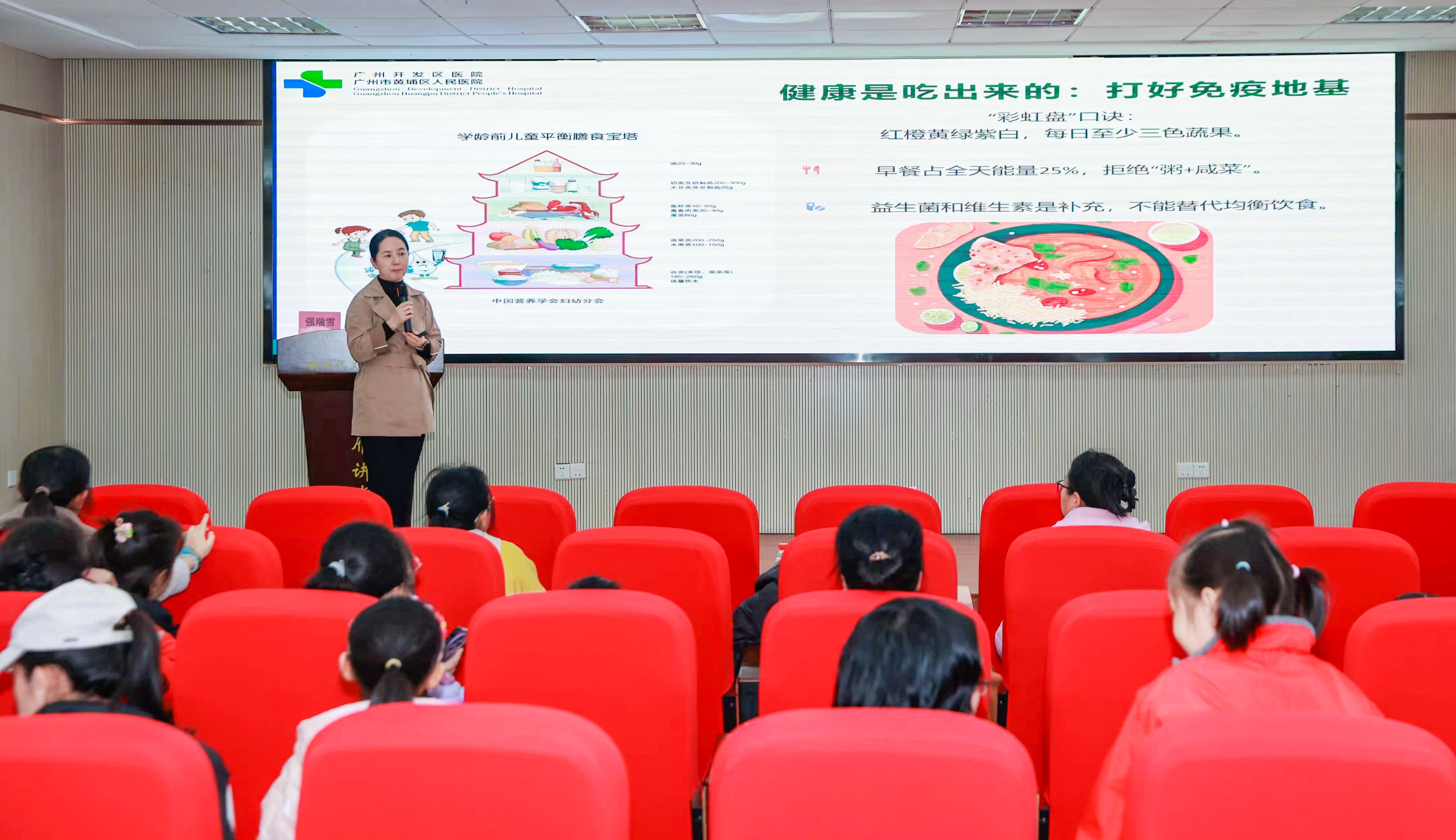 活动特别邀请广州开发区医院儿科主任强瑞雪医师为社区家庭带来育儿课程,围绕“儿童常见病预防与家庭护理”进行主题分享,吸引了约25组家庭积极参与。强瑞雪医师在分享中系统梳理了儿童常见的呼吸道、胃肠道感染及过敏性疾病的识别方法与家庭护理要点,并着重为家长构建了科学的育儿知识、理念与实践防护体系。课程强调,对于正处于生命早期1000天的婴幼儿而言,健康成长离不开科学的预防意识和正确的家庭护理能力,掌握这些知识能帮助家长在育儿过程中更加从容,为孩子的健康成长奠定基础。