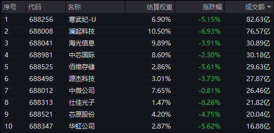 科创芯片ETF汇添富(588750)标的指数成分股多数回调:澜起科技跌近7%,寒武纪-U、佰维存储跌超5%,海光信息跌超3%,中芯国际跌超2%。