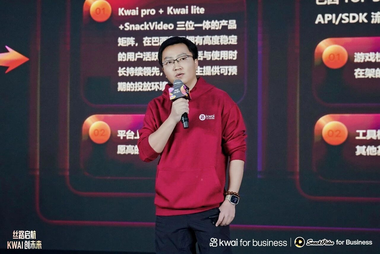 商业化产品围绕“找对流量、做好投放、开拓新局”持续升级,已构建 Kwai Pro Kwai Lite SnackVideo 产品矩阵,持续提升用户活跃度与使用时长;并创新推出 WiFi 热点与无网场景变现模式,将广告触达延伸至更多真实用户场景。正如快手国际商业化商业产品负责人廖锐在会上分享,“我们在过去一年也持续深耕和革新核心产品策略,开发智能投放,从‘人工’ 到 ‘AI ’,全面提效降本”,帮助大家 “省成本、提效率”,让投放效果更稳定、转化更精准。未来借助我们的产品能力,在海外市场开拓更大的商业版图,领航商业新程。