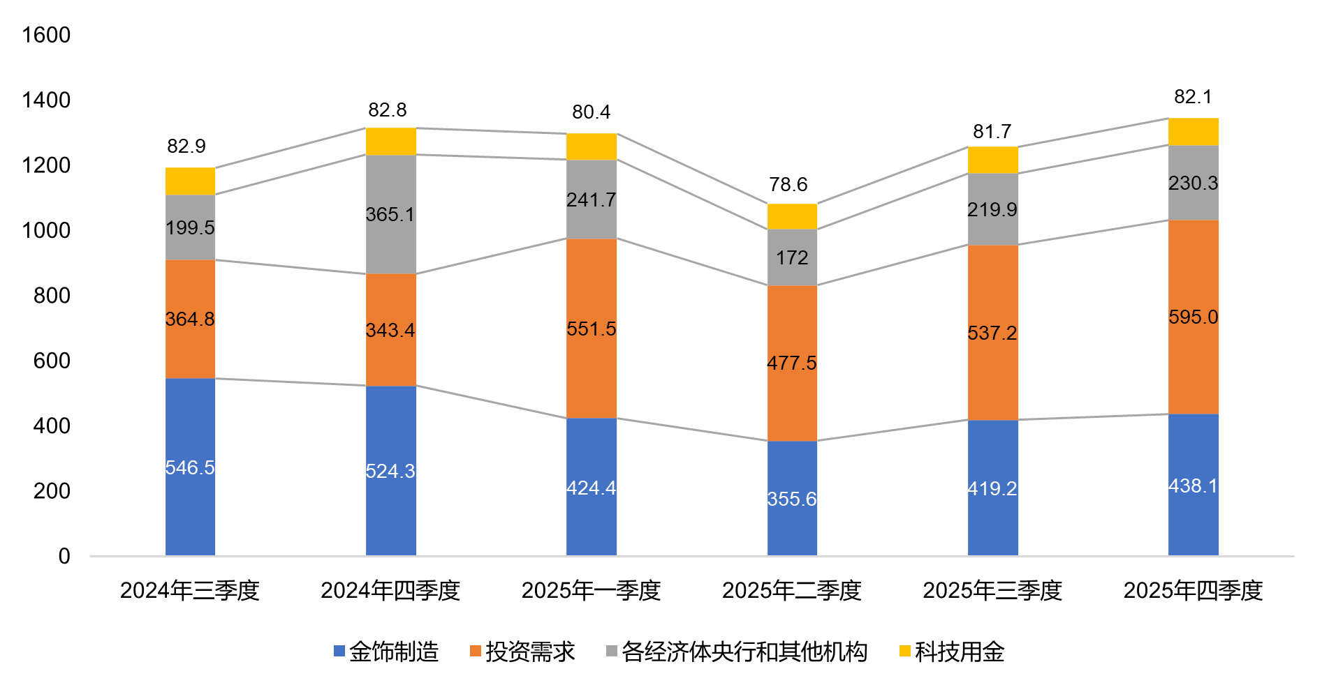 数据来源:世界黄金协会,《2025年四季度全球黄金需求趋势报告》,单位:吨。
