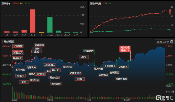 2月4日,A股三大指数今日涨跌不一,截至收盘,沪指涨0.85%,深证成指涨0.21%,创业板指跌0.4%。