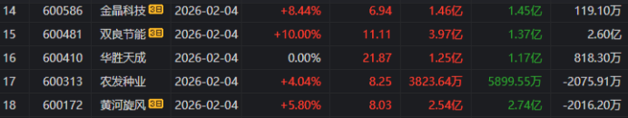 恒源煤电涨停,日振幅值达9.62%,日换手率达4.78%,收盘价7.21元,成交额4.00亿元,总市值86.52亿元。