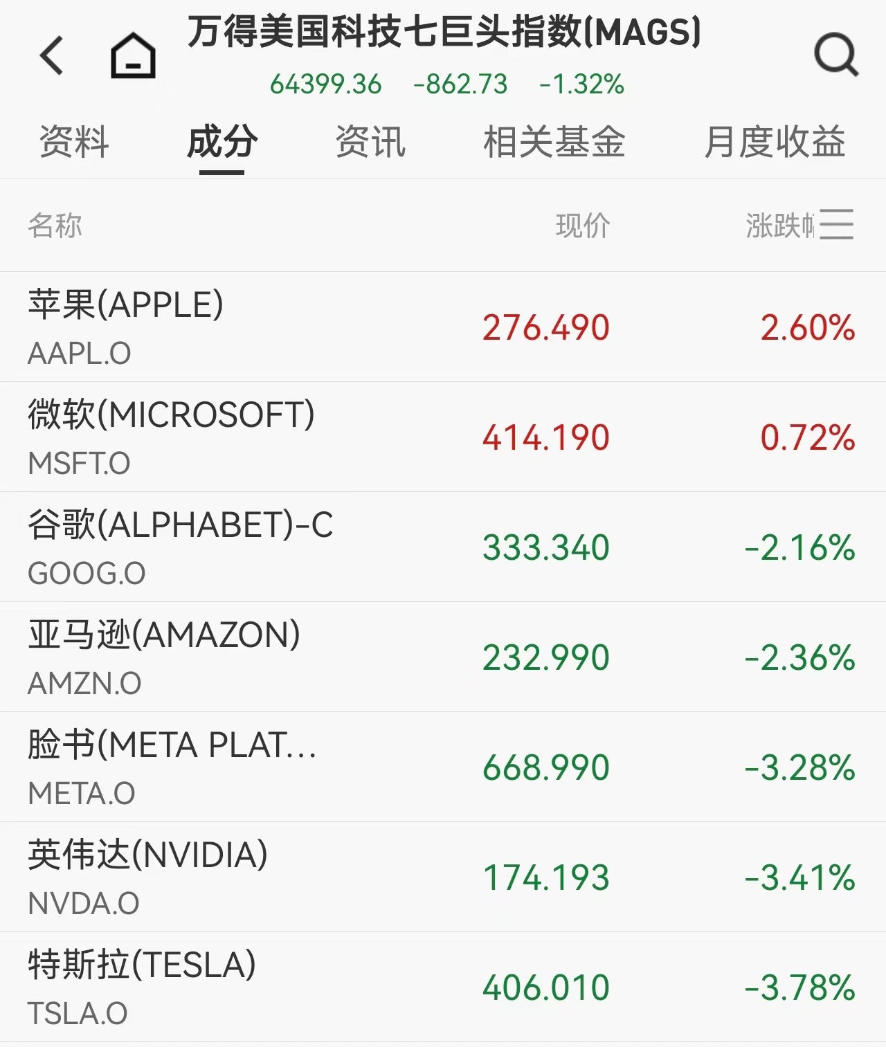 科技七巨头多数承压,英伟达跌3.41%,特斯拉跌3.78%,Meta跌3.28%,谷歌跌2.16%,亚马逊跌2.36%。不过板块内也有亮点,苹果逆势上涨2.62%,其Apple TV与iTunes服务中断问题已解决;超微电脑因Q2业绩及指引超预期涨近14%;芯科实验室暴涨近49%,得益于德州仪器75亿美元的收购计划。