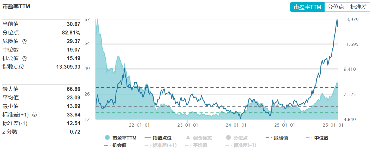 从横向比较看,中证细分有色金属产业主题指数PE-TTM约30倍,虽略高于全A市场(约23倍)的平均水平,较2021年周期峰值(超50-60倍)仍有显著安全边际,且考虑到板块2026年预期EPS同比增速达35%-45%,PEG指标处于合理区间,估值溢价基本被高增长预期消化。