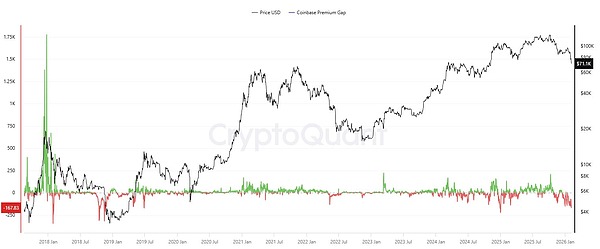 Coinbase Premium Gap 已降至 2024 年以来的最低水平。来源:CryptoQuant