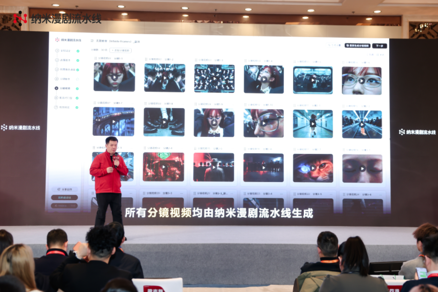 图说:360集团副总裁、AI产品负责人梁志辉在纳米漫剧流水线路演现场