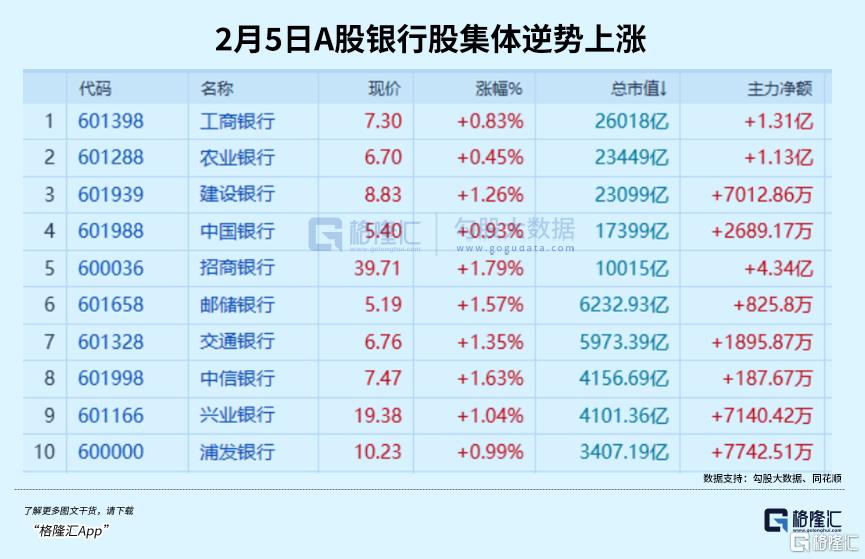 2月4日单日,成交额靠前的招商银行、工商银行等标的,均呈现资金净流入态势,印证了避险资金对银行股的明显认可。