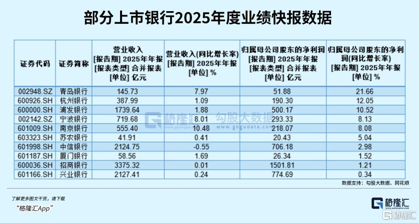 截至2月4日,已有青岛银行、杭州银行、浦发银行、宁波银行等10家A股上市银行发布2025年业绩快报,显示这些上市银行业绩总体稳健增长,盈利端全线飘红。