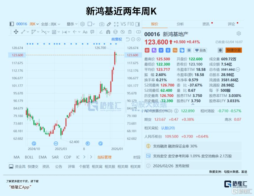 在亮眼业绩和稳健现金流表现下,新鸿基地产过去一年股价近乎翻倍,股价也创下1991年上市以来新高。