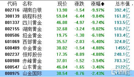 与此同时,港A两市的贵金属股票板块遭受重创。