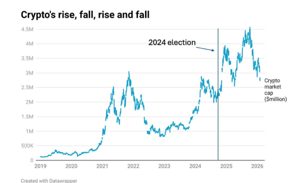 第三也是最重要的一点,具有讽刺意味的是,在这个曾充斥自由意志主义思想的领域里,加密货币如今却成了高度政治化的资产。2024年,这个行业投入巨资帮助特朗普当选,并支持其他对加密友好的政客,自那以后,更大笔的资金直接流向了特朗普及其家族。