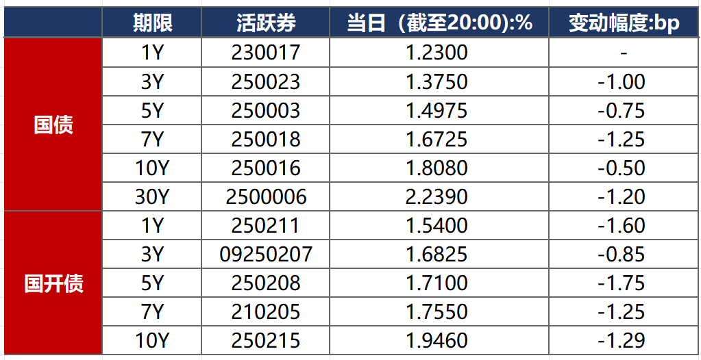 2月5日,央行公开市场重启14天逆回购,加之股市调整,提振债市整体回暖。截至北京时间20:00,10年期国债活跃券250016收益率下行0.50bp至1.8080%,10年期国开债活跃券250215收益率下行1.29bp至1.9460%