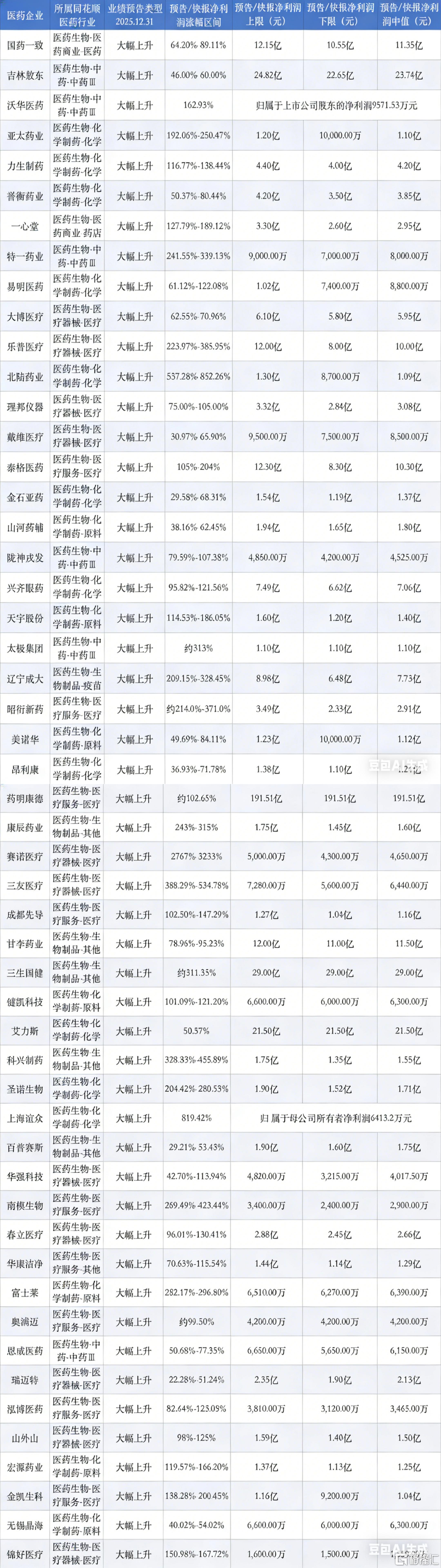 截至2月5日,A股共有278家医药企业公布最新业绩预告/快报,其中至少有53家医药企业归母净利润实现了大幅上升,包括国药一致、亚太药业、药明康德等。