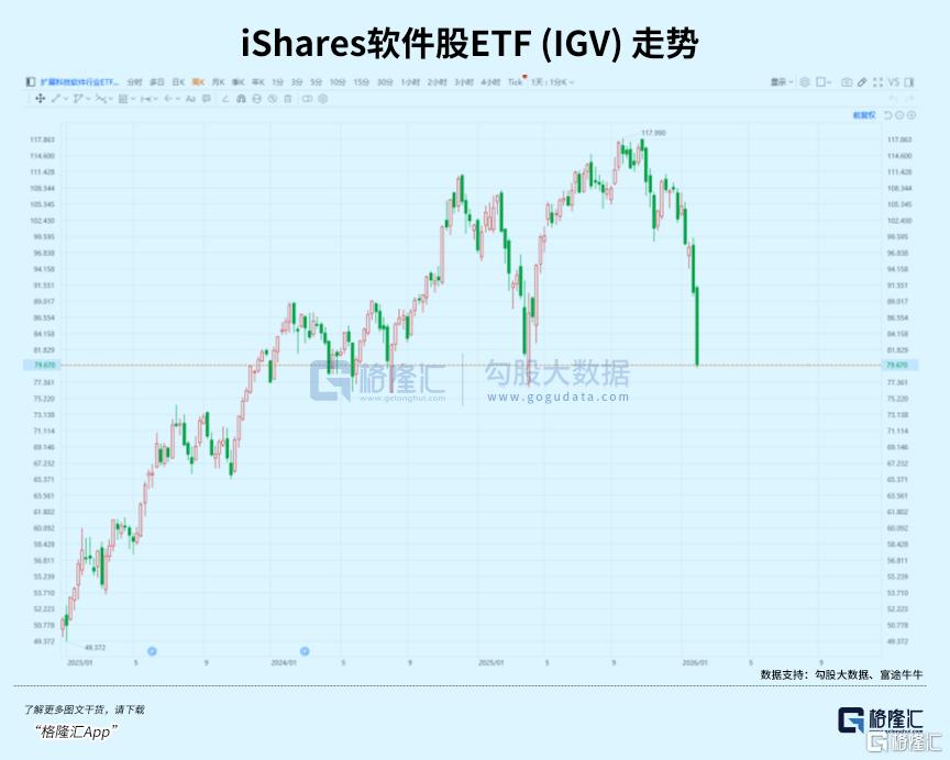 近期Adobe、Salesforce、SAP等软件公司的股价经历了一番罕见的调整,Anthropic发布的Claude Cowork及其行业插件成了导火索。 iShares软件股ETF (IGV) 年初至今(YTD)跌幅已达25%,远远跑输大盘。