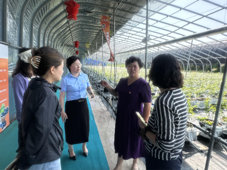 图:工作人员走访种植大棚,为乡村振兴路上的奋斗者增添安心保障