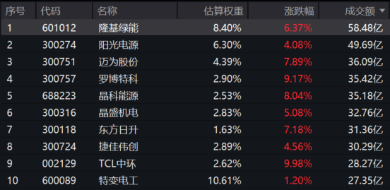 光伏ETF汇添富(516290)标的指数成分股多数飘红:罗博特科涨超9%,晶科能源涨超8%,迈为股份涨超7%,隆基绿能涨超6%,阳光电源涨超4%。