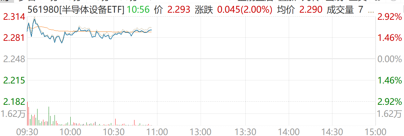 年前最后一个交易周,A股市场结构性行情持续,半导体设备板块表现活跃。聚焦半导体设备、材料和AI芯片设计的半导体设备ETF(561980)盘中持续走强、截至发稿上涨2%,实时成交额近1亿元。