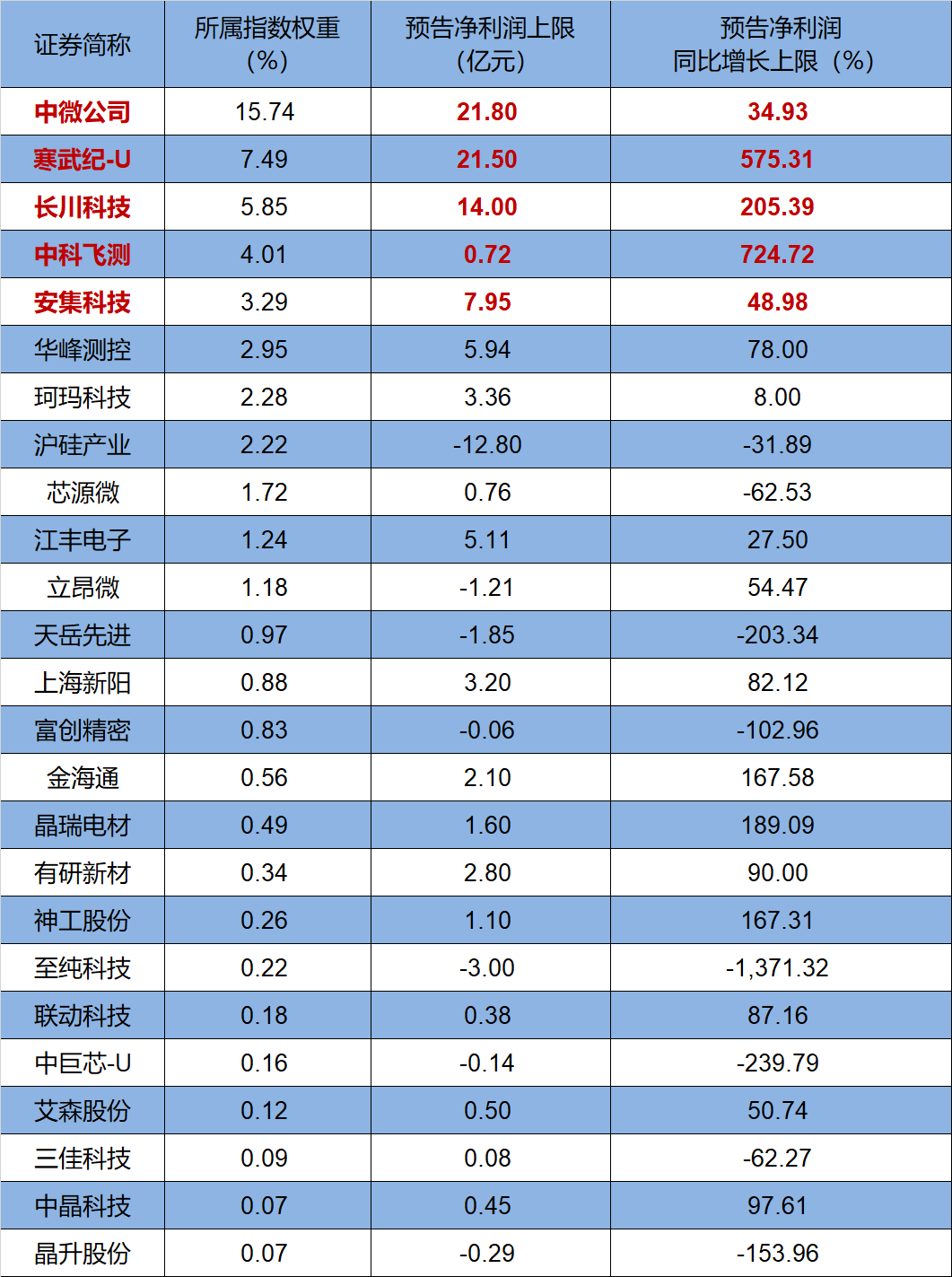 成份股涨幅显著,华海诚科大涨7%,江丰电子、中船特气涨超6%,寒武纪、华峰测控、中科飞测等多股涨超4%,芯源微、南大光电、长川科技、海光信息、北方华创、立昂微涨超2%。
