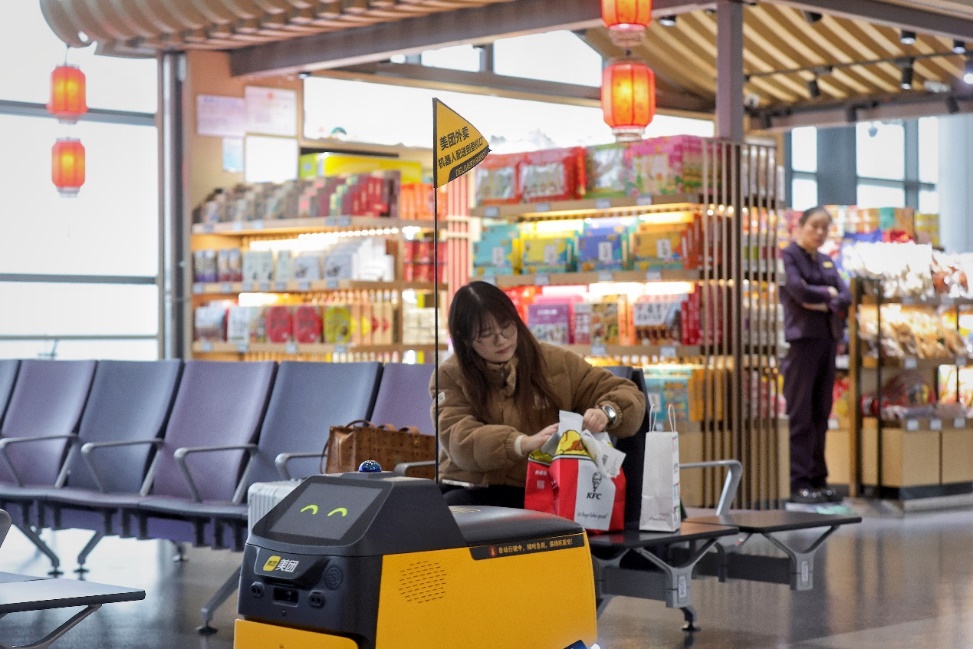 对于带小孩的家庭、携带大件行李的旅客以及商务人士而言,机器人配送服务将原本繁琐的“觅食”过程变得简单轻松。一杯热咖啡、一份准时送达的简餐,让春运回家的路途少了一分奔波,多了一份从容与温暖。