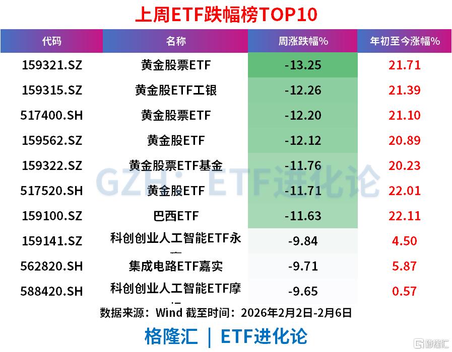 黄金股票ETF、黄金股ETF工银、黄金股票ETF、黄金股ETF、黄金股票ETF基金、黄金股ETF、巴西ETF上周分别跌13.25%、12.26%、12.20%、12.12%、11.76%、11.71%、11.63%。