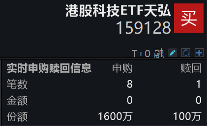 值得一提的是,港股科技ETF天弘(159128)全天获资金净申购1500万份。