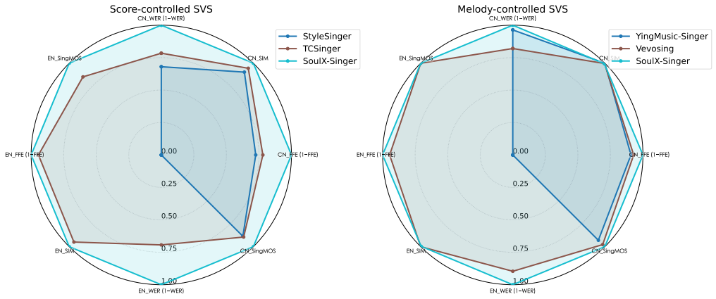 实验结果表明,SoulX-Singer 在语义清晰度、歌手相似度、基频一致性以及整体合成质量等多个维度上均显著优于此前的相关工作;在主观听感评测中,其表现同样取得了明显领先优势。