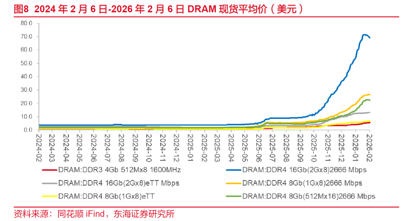 银河证券指出,1月存储市场延续2025年四季度以来的强势上涨态势,DRAM和NAND闪存价格涨幅持续超预期。三星电子、SK海力士等头部厂商一季度合约价大幅上调,其中NAND闪存供应价格上调超100%,DRAM价格涨幅达60%-70%。涨价核心驱动因素包括:AI服务器对HBM需求爆发、数据中心资本开支加码、产能结构性调整等,供需缺口持续扩大,预计本轮涨价周期将延续至2026年中。