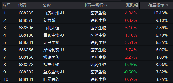 【科创创新药ETF汇添富(589120)标的指数前十大成分股】