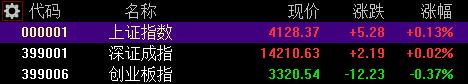 A股三大指数今日小幅震荡,截至收盘,沪指涨0.13%报4128点,深证成指涨0.02%,创业板指跌0.37%。全市场成交额2.12万亿元,较前一交易日缩量1454亿元,超3100股下跌。