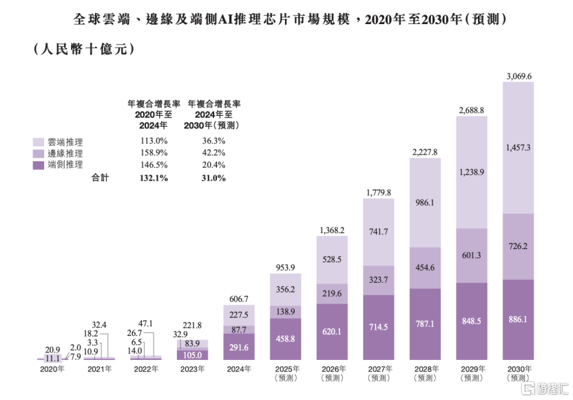 根据灼识咨询数据,预计到2030年,全球视觉终端计算市场规模将达75亿元,智能驾驶市场规模将达1146亿元,边缘推理市场规模更是将达到7262亿元。