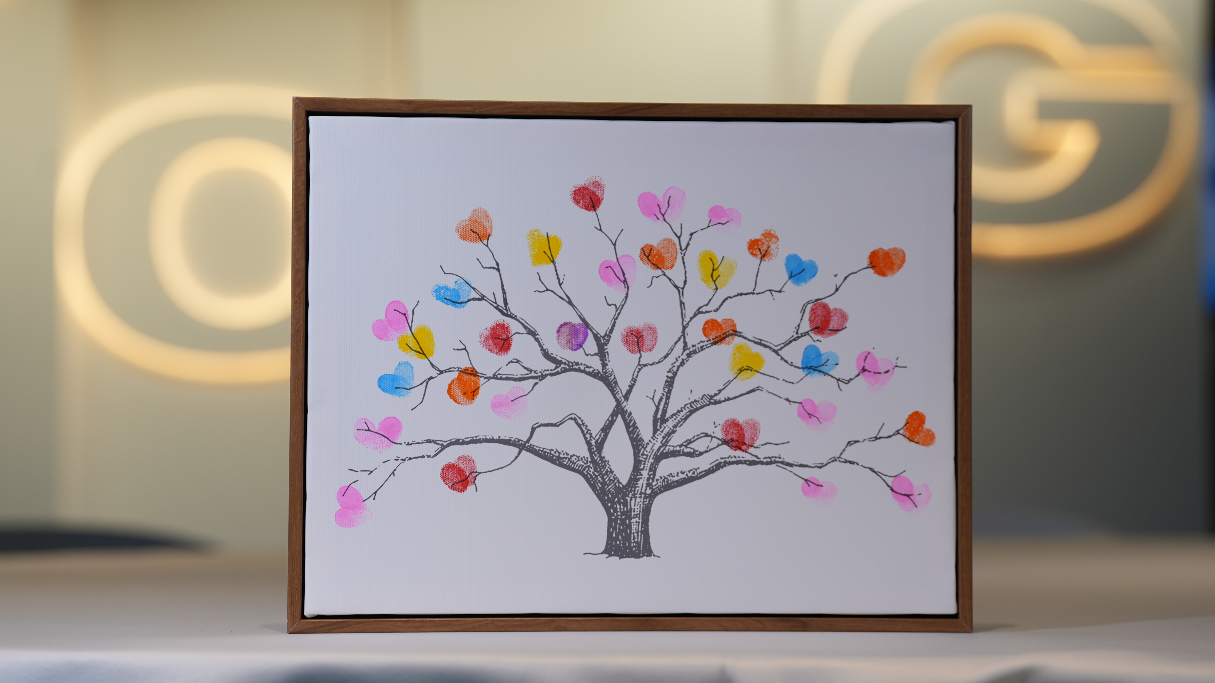 九年前,在公司的见证和祝福下,一对新人步入了婚姻的殿堂,婚礼结束后,他们共同制作了这幅指纹树装饰画回赠给公司。9年时光流转,去年我们在举办员工子女夏令营的时候,在报名现场看到了一个熟悉的身影,仔细一看,竟然是9年前参加集体婚礼的一位同事,他领着孩子来报名,我们相见那一刻,特别的惊喜与感慨,他笑着对我说:“时间真快,孩子都这么大了,感谢公司惦记着他们这个小家。”就在今年,集团职工运动会的现场,我又遇到了另一位当年参加婚礼的同事,这次他是带着爱人和孩子,一家三口齐上阵参与亲子项目的比赛。阳光下,他们协力拼搏欢笑的样子,特别动人。