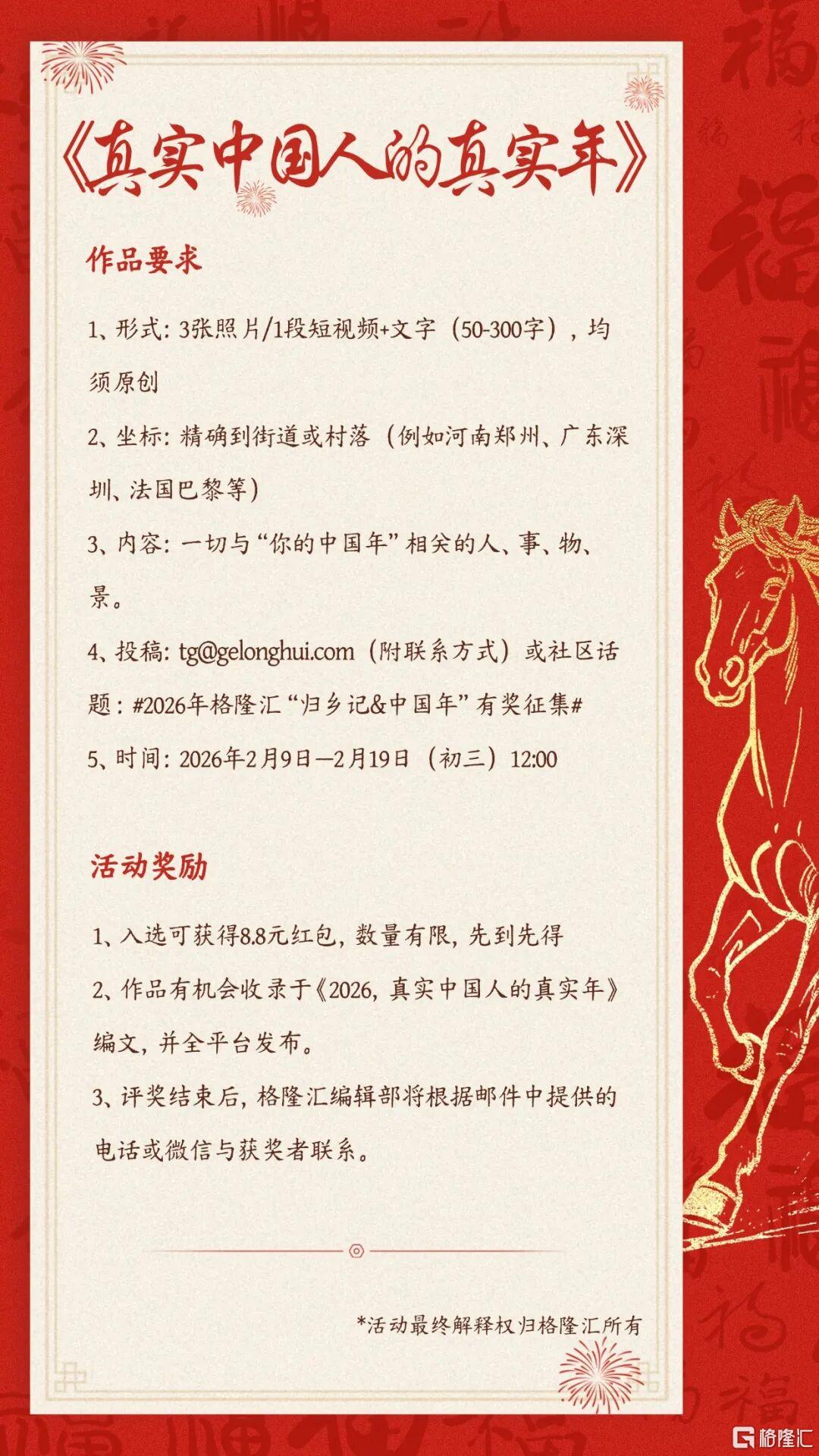 格隆汇2026"归乡记&中国年"征集活动正式开启。