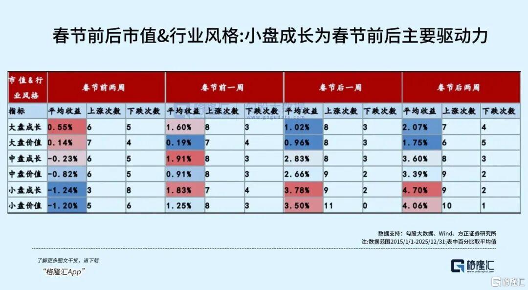 其次,政策面暖风持续吹拂,力度和持续性都很可观。近期“十五五规划”在各部委持续推进中,新质力方向上包括重点关注AI技术落地与产业深度融合,明确释放出对科技产业大力支持的信号,给市场吃下“定心丸”。从历史规律来看,2月是春季躁动胜率最高的阶段,小盘指数春节至两会期间上涨概率达93.8%,2月单月上涨概率达87.5%,这种经过多年历史验证的日历效应,本质上是资金对节后政策落地、产业复苏的提前布局。