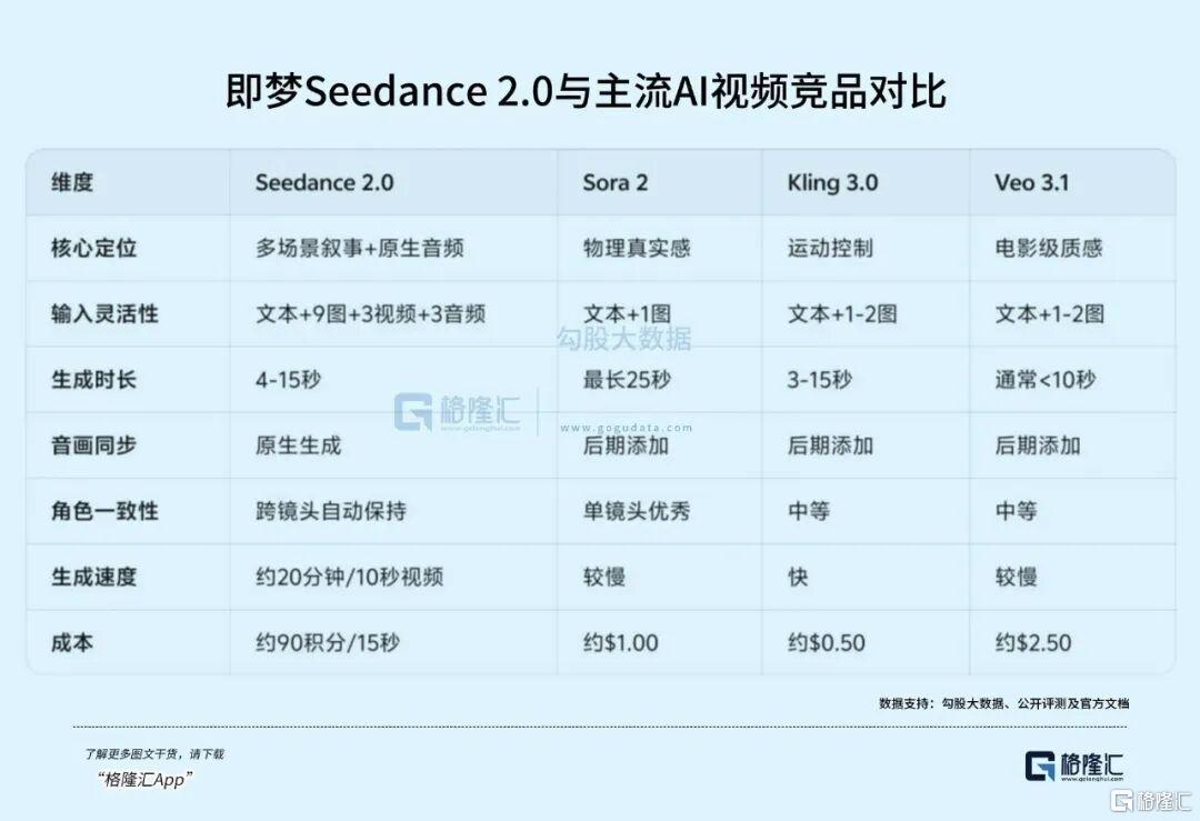 字节Seedance2.0是AI视频生成的里程碑产品,与竞品差异化优势明显,支持文本、图像、音频四种模态输入,60秒可生成带原生音频的多镜头电影级视频,成功解决了“角色不一致”“镜头不连贯”“画质粗糙”三大痛点,实现AI内容工业化生产,AI视频进入“导演级”时代,它更大幅降低了内容生产的门槛和成本。