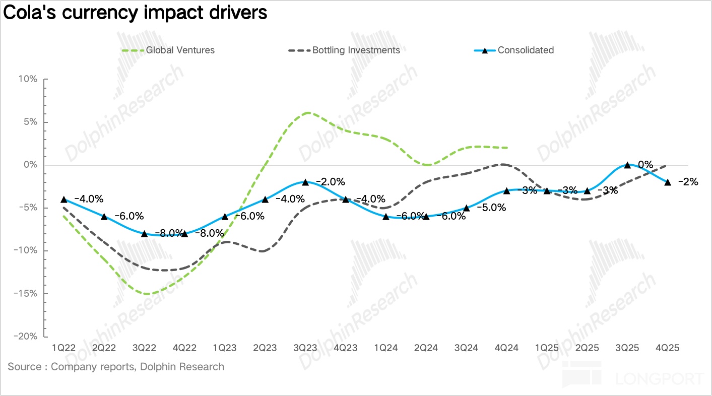 单就可口可乐 Q4 的业绩本身而言,不及预期的核心原因在于汇率逆风和 BodyArmor 商标带来的一次性减值影响,但二者实际上对公司的内生增长影响并不大。