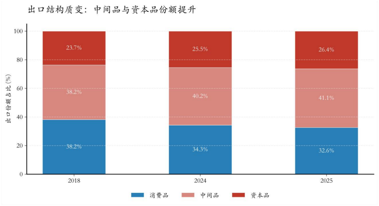 1 、出口结构升级: 由 “终端代工 ”转向 “工业基座 ”,重塑出口韧性