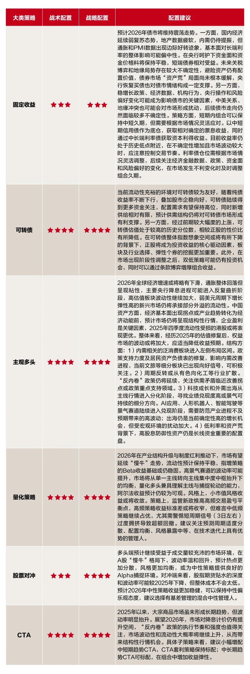 2026年大类资产策略配置建议