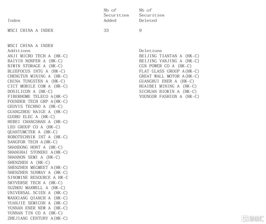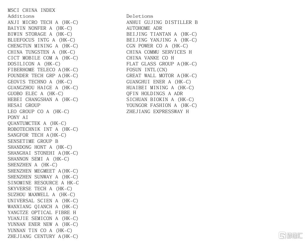 MSCI名单最新变动
