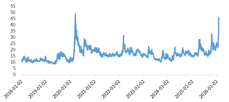 波动率预警同时黄金ETF波动率指数(GVZ)在1月末飙升至46.02,逼近2020年的极值。这种高波动率通常预示着市场情绪已极度不稳定。