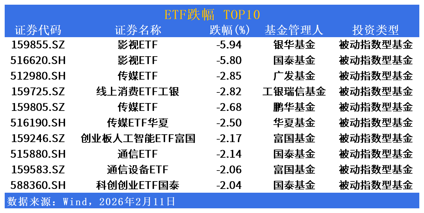 2026年2月11日,Wind数据显示,上证指数收涨0.09%,创业板指跌1.08%。化工、建材、有色金属、油气、煤炭板块涨幅居前,AI应用、算力硬件、太空光伏、商业航天、大消费题材调整。