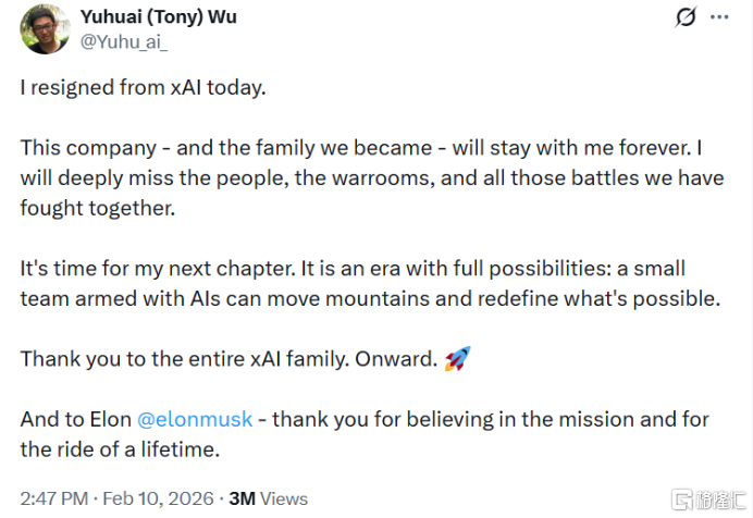 周一晚间,数学推理与符号AI领域的顶尖研究者吴宇怀率先在X平台发文,宣告自己正式离开xAI。
