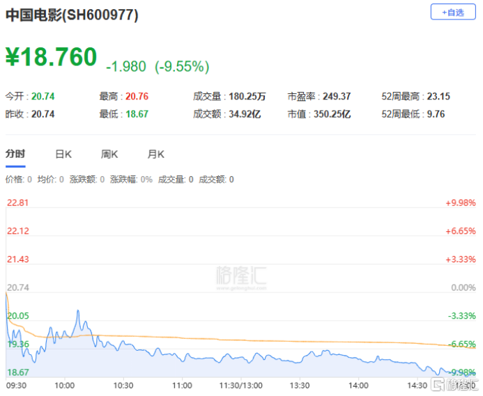 中国电影(板块回调 资金流出 前期涨幅较大)