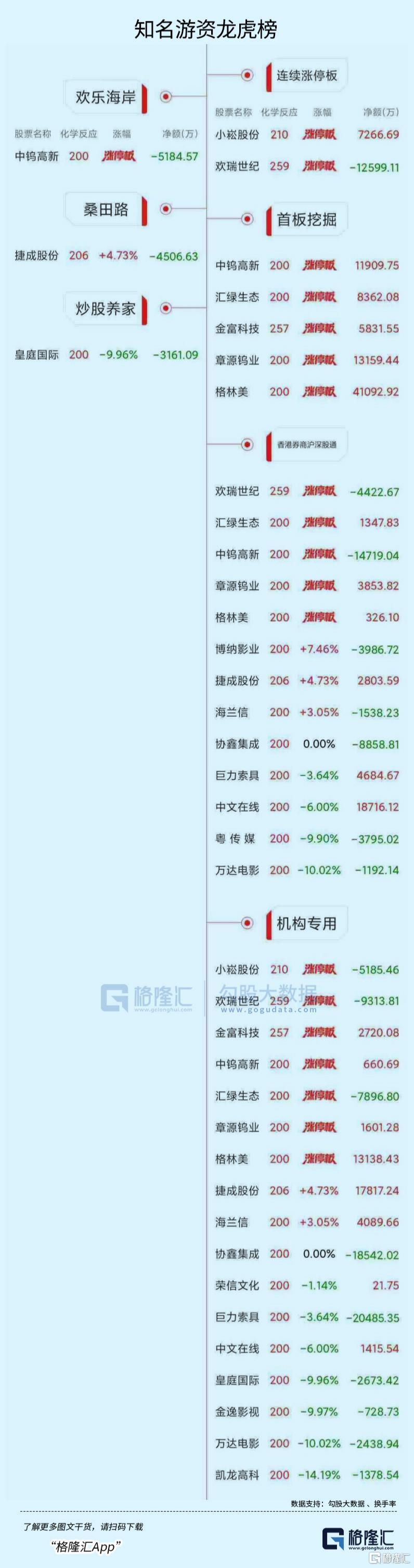 龙虎榜单日净卖出额前三为中文在线、中国电影、粤传媒,分别为5.01亿元、2.86亿元、2.29亿元。
