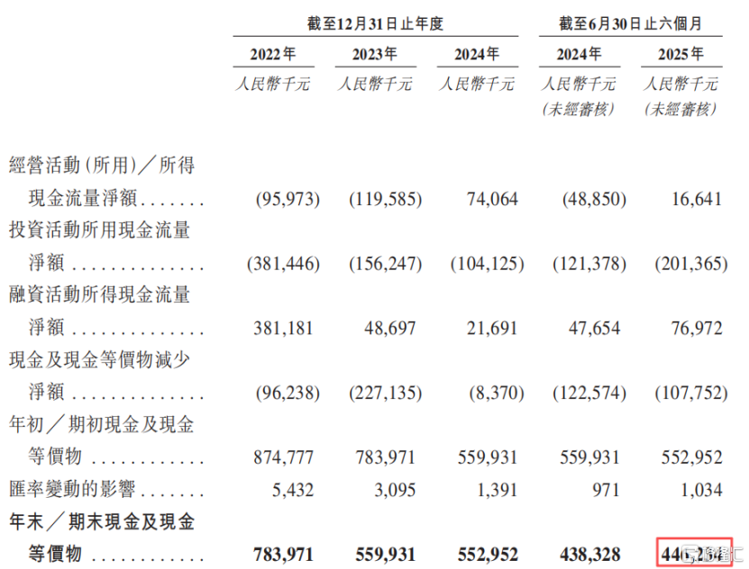 截至2025年6月底,公司拥有现金及现金等价物4.46亿元,较2024年末的5.53亿元有所下降。