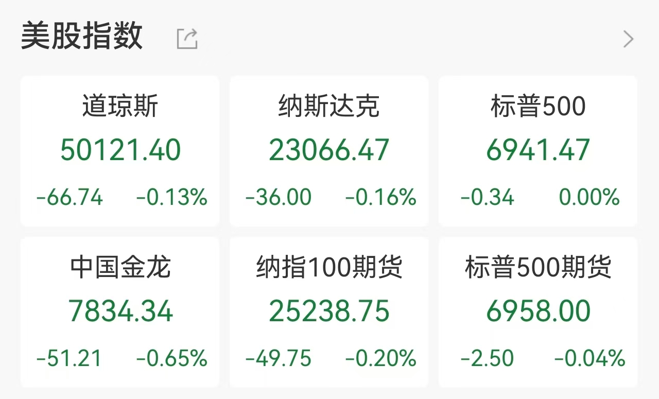 截至收盘,道琼斯工业指数跌0.13%,报50121.40点,单日下跌66.74点;标普500指数微跌0.34 点,近乎持平,报6941.47点;纳斯达克综合指数跌0.16%,报23066.47点,下跌36.00点。此前市场寄予厚望的非农数据,最终未能成为美股持续走高的推手,反而因强化了美联储维持高利率的预期,引发了盘中的获利了结与调仓行为。