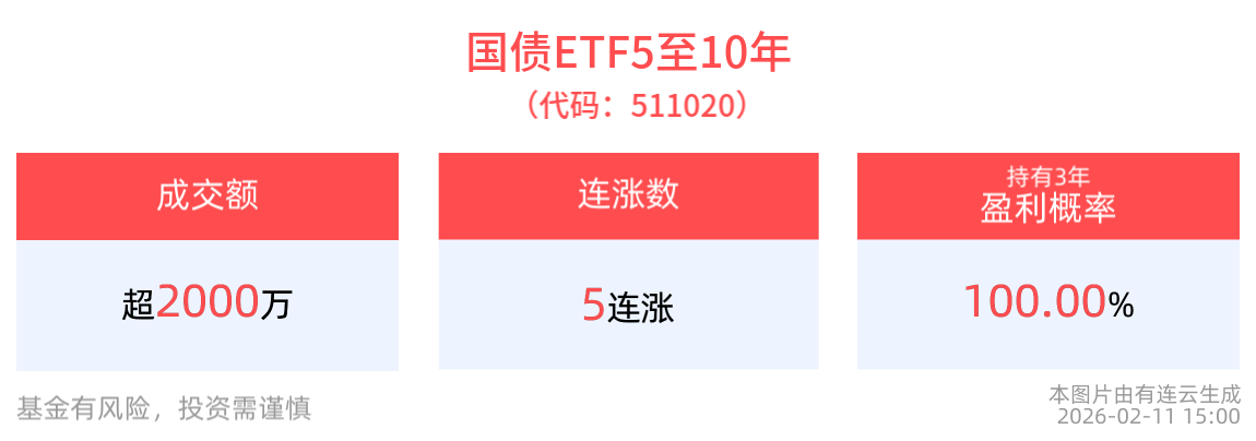 成交额超2000万元,国债ETF5至10年(511020)实现5连涨