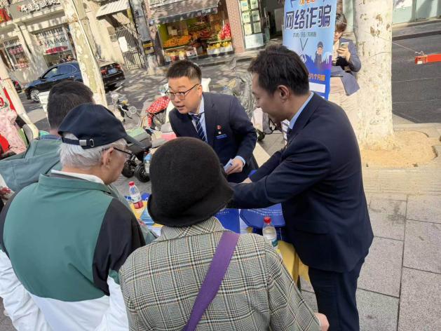 厦门国际银行上海虹口支行田春磊(右一)积极参与反诈宣传工作