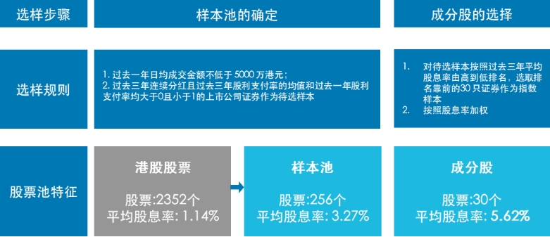 图:以2024年港股通高股息指数的选股流程为例,能满足连续分红且分红率稳定的港股公司仅在一成左右