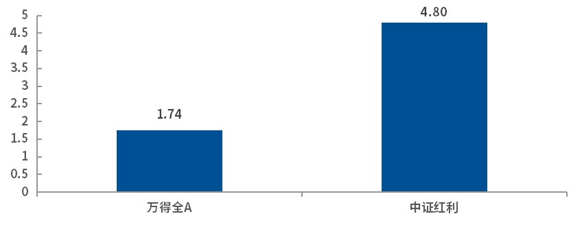 图:当前中证红利指数的股息率(%)远高于A股整体
